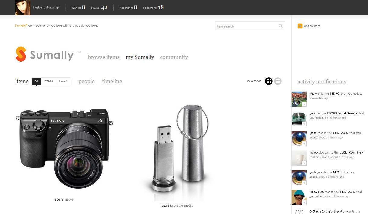ごくごく簡単に言うと、自分の「持っているモノ」と「欲しいモノ」をシェアできるウェブサービス。(で、いいのかな?)