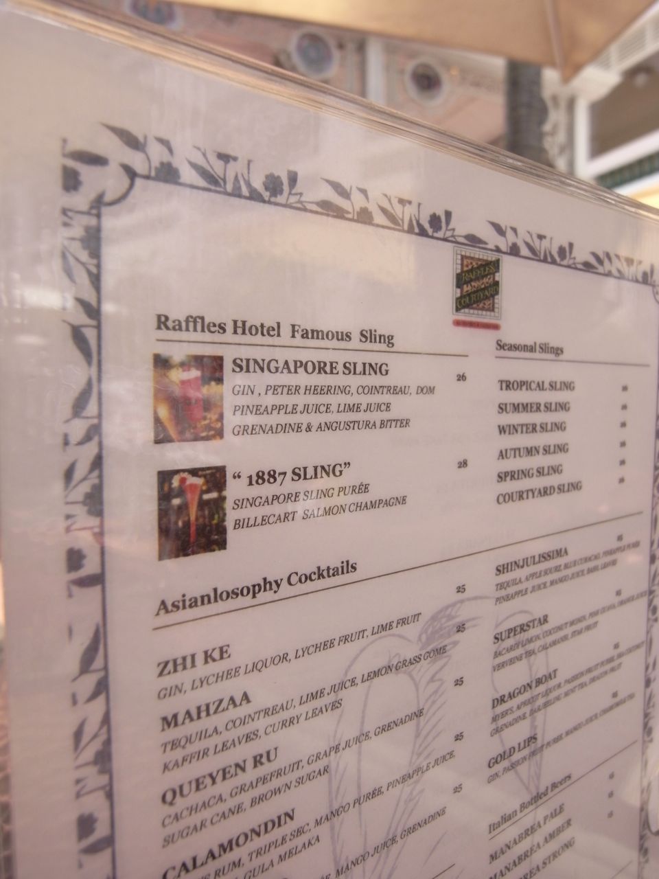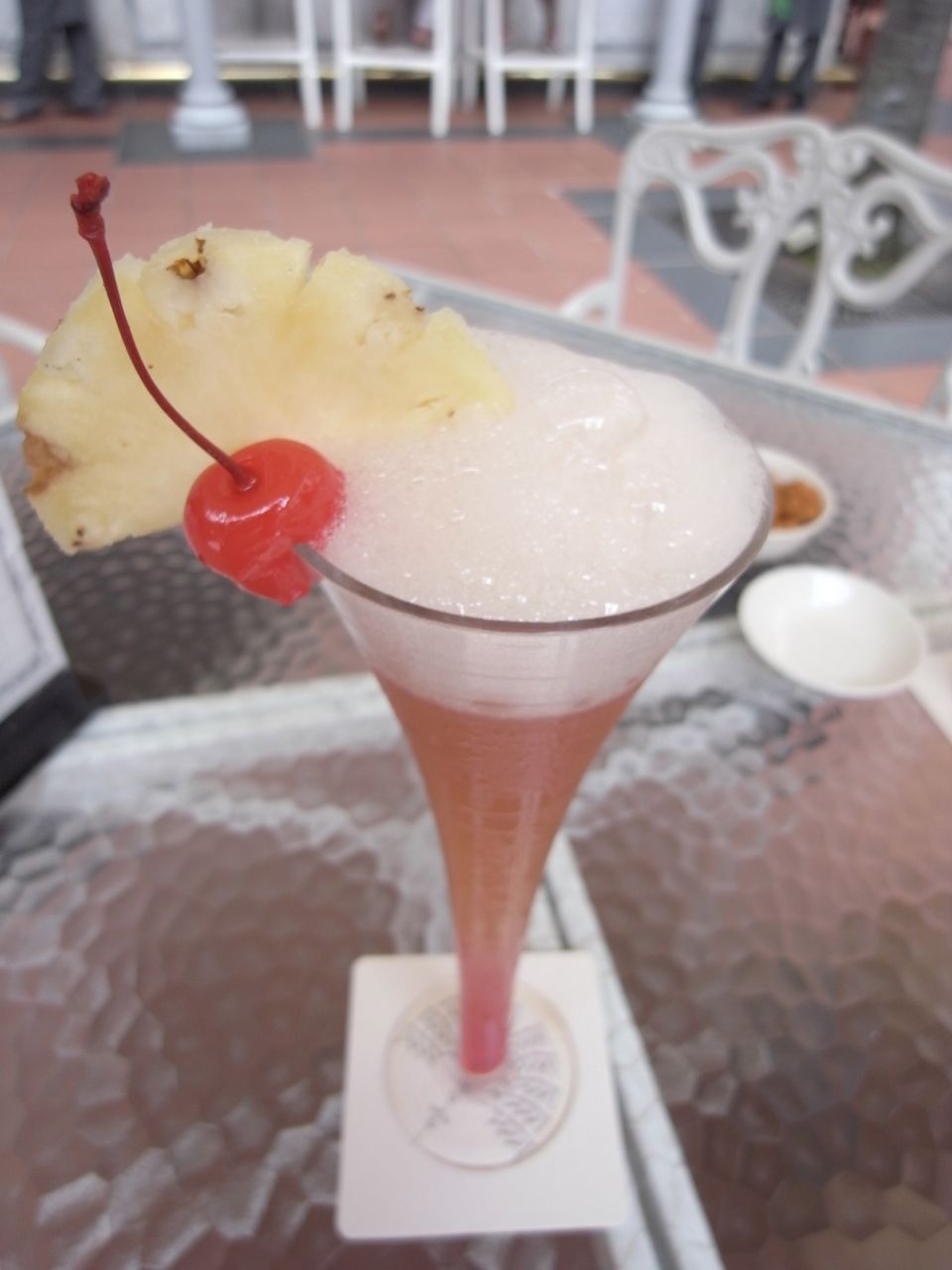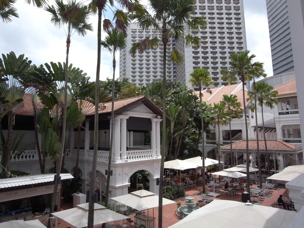 中庭とモールの部分には一般客も入れるようだったので、ここで噂のシンガポールスリングを。シンガポールスリングの発祥の地がここRUFFLES HOTELなんだそうで、確かに美味しかった…!(けど、結構する)