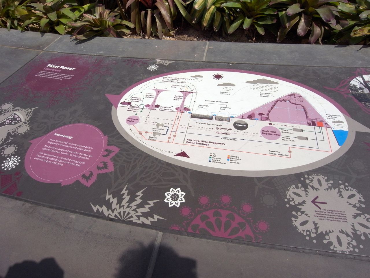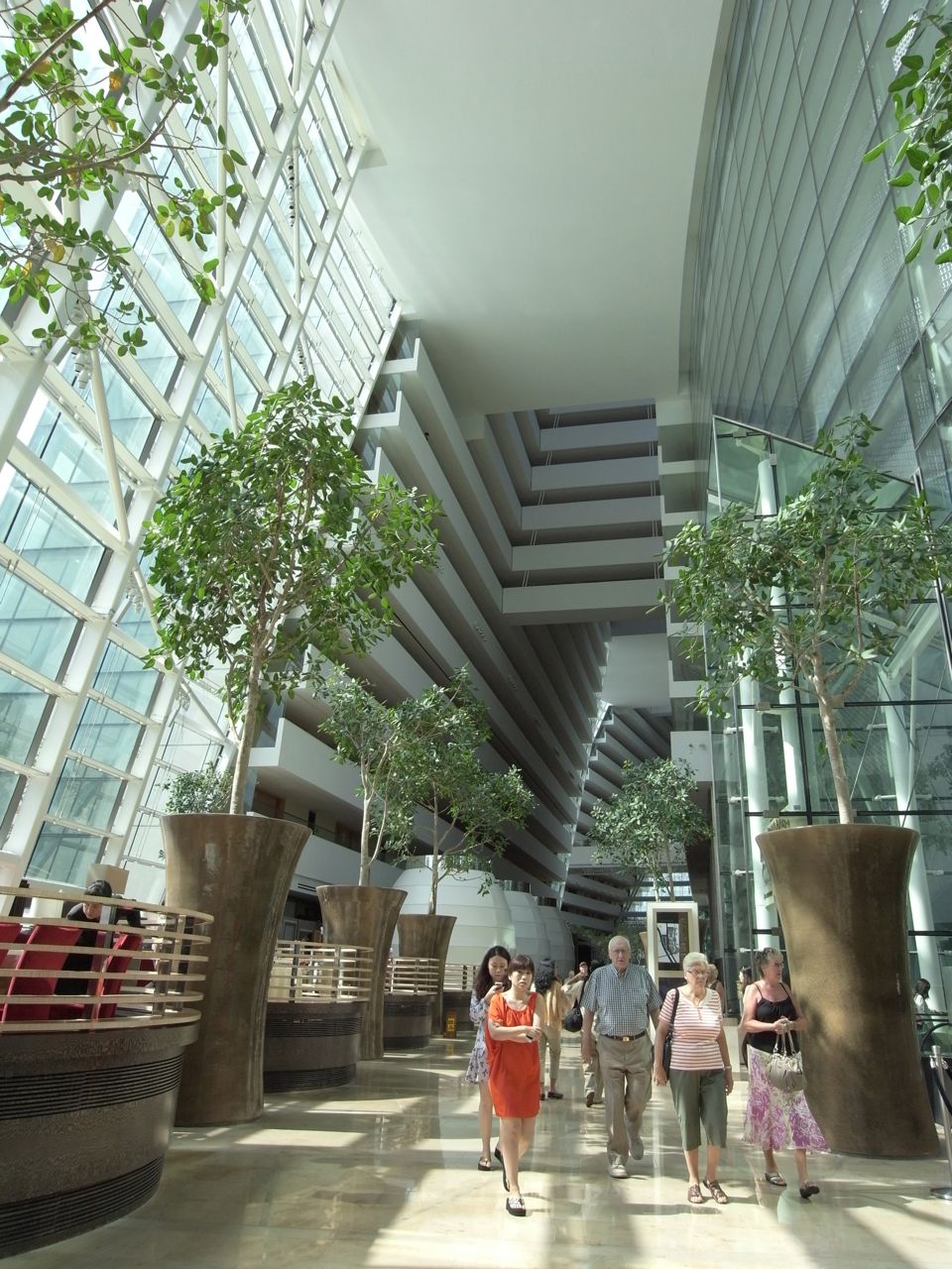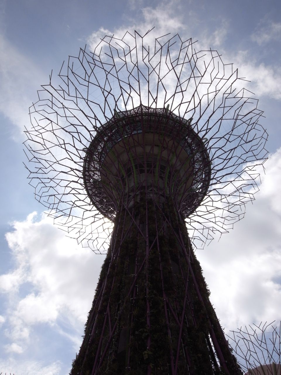 このSupertreesの壁面部分には植物が植えられていて、植物が育っていけば、上部の針金みたいな枝部分にも巻き付いていって、緑の巨大な固まりみたいなものが完成するのではないかと。数年後に来たらまた違う景色が楽しめそうな。