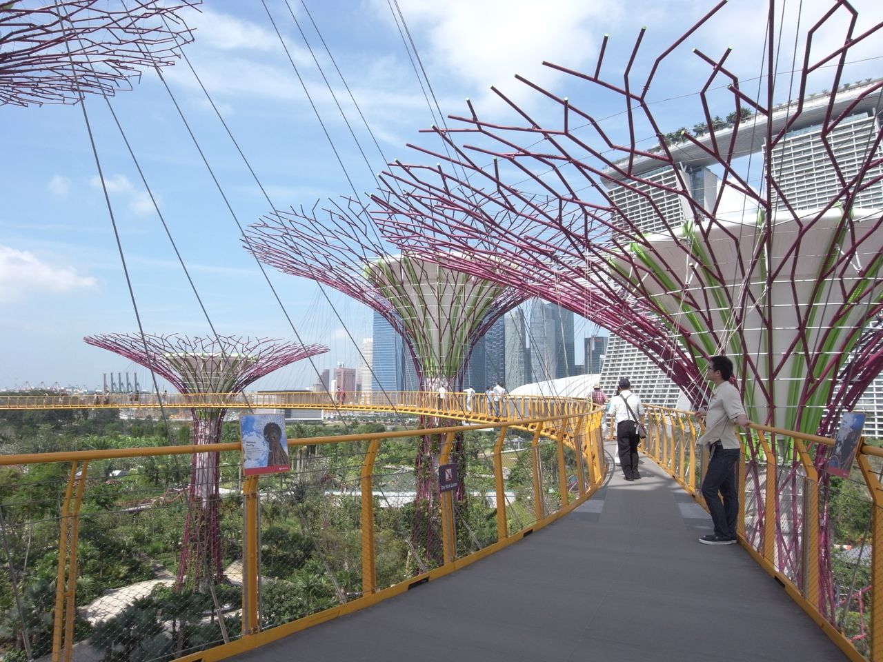 まず目を引くのが樹をモチーフにした巨大な建造物「The Supertrees」。間を縫うように遊歩道「OCBC Skyway」が通っておりまして、空中散歩が出来ます。