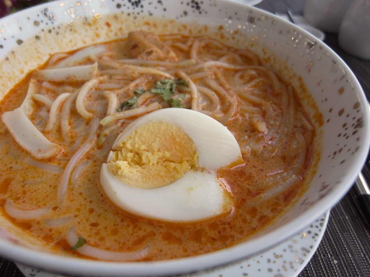 ここは折角なのでご当地メニューを食べたいなあということで、私はラクサを選択(トンコツラーメンとかもありましたよ)。まろやかでくせもなくて食べやすいラクサでした。朝からヘヴィかなと思ったけど全然いけた。でもメイン2品要らない(最初から頼まなかった)。