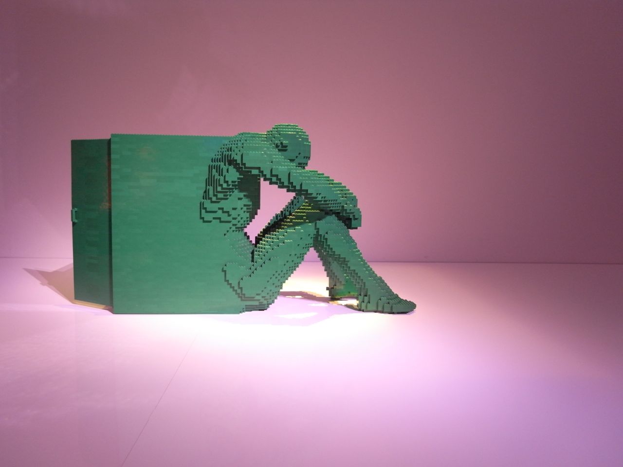 この方の作る作品は、レゴにありがちな「ポップ」に傾倒していなくて、人間の内面を表現するようなドキッとするモチーフがあったりで、興味深かったです。1個1個の作品に大体1〜2万くらいのブロックが使われているらしい。