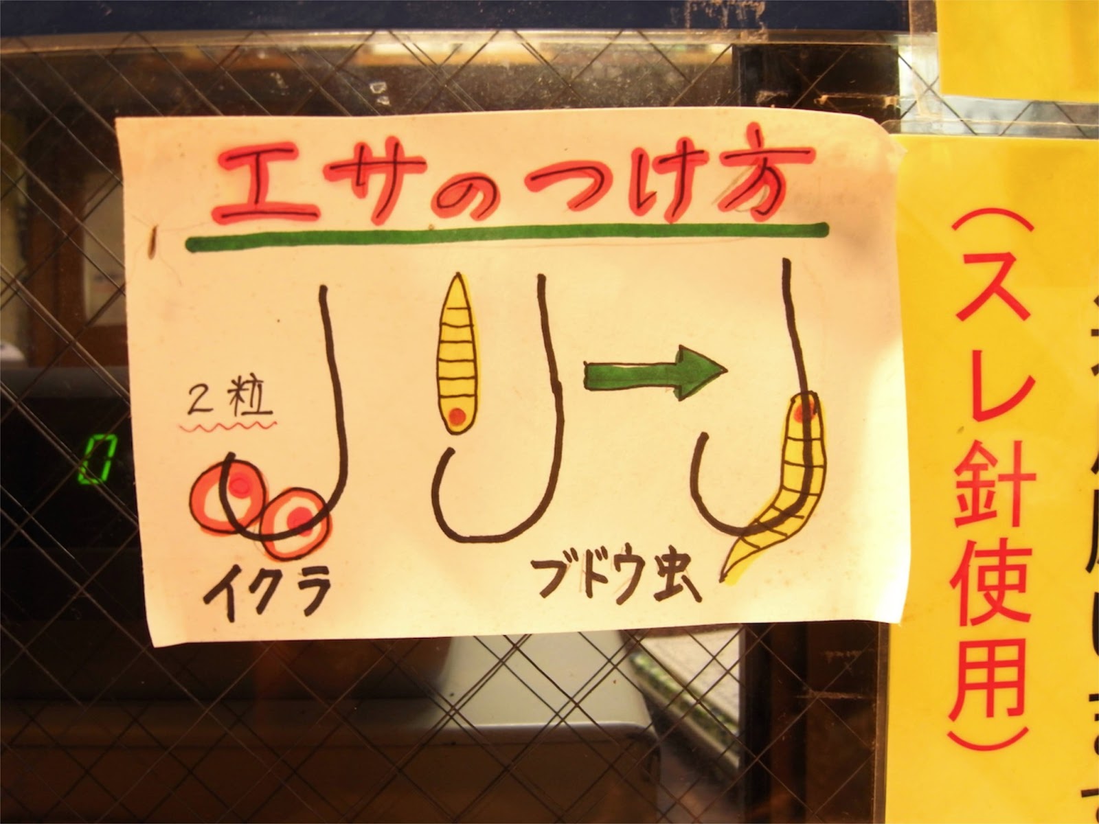 餌はブドウ虫というかなり難易度高めな幼虫と、イクラから選べます。当初いけるかなと思ってブドウ虫にしてみたけど、あまりのグロさに断念しました(イクラに交換してくれた)。無理はせずにいきましょう。