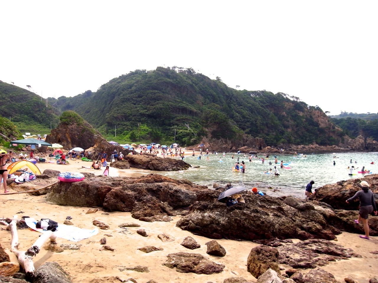 磯あそびも出来そうな感じのこじんまりとしたビーチ。海はやっぱり奇麗。