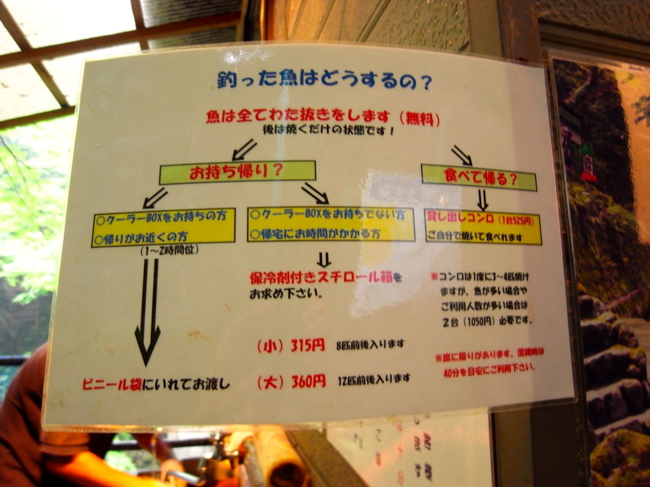 滝も見ずに取りあえずマス釣り受付のおばちゃんの元へ。