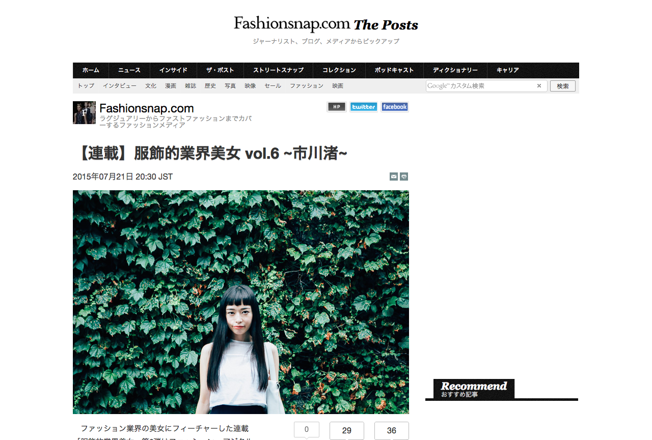 色々なFashionsnap.comさんとのご縁で、Fashionsnap.comの特集記事「服飾的業界美女」という企画に登場させていただいております。