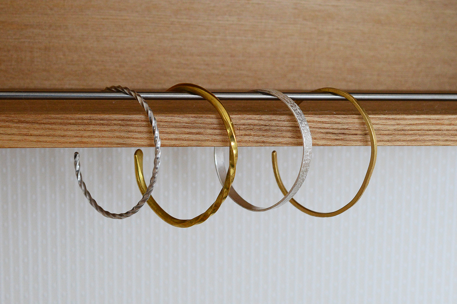 - 形状は、金槌で叩いた跡を活かす「鎚目」、金属をひねる「捻り」、断面が半円になる「甲丸」と「通常」の4種類
