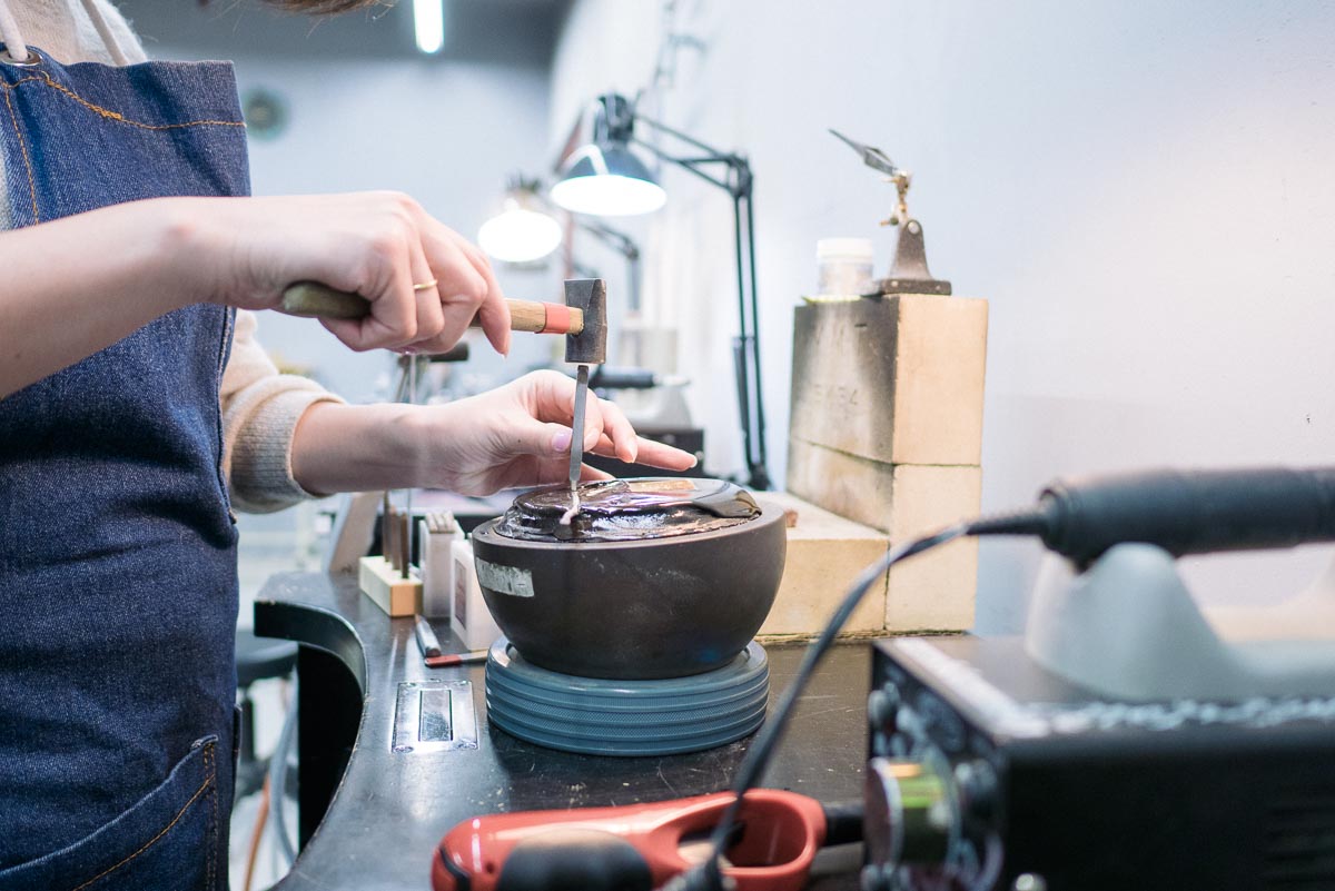到着すると、スタッフの女性が金工のゾーンに案内してくれ、早速ワークショップがスタートします。私たち2人に対して、教えてくれるスタッフさんは1人。なかなか贅沢です。わからないことは質問すればスグ答えてくれます。
