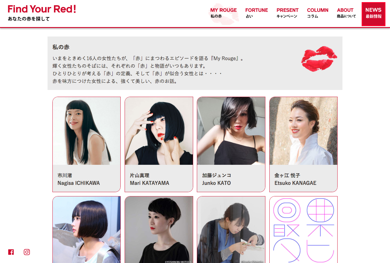 資生堂さんの新しい口紅「Rouge Rouge」のキャンペーンサイトに登場させていただいています。